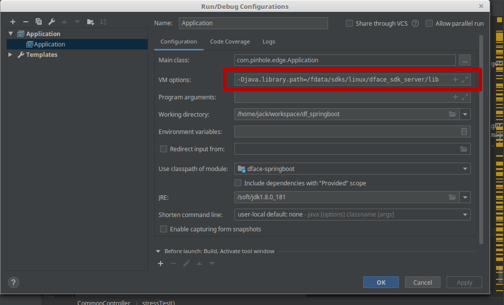 [Optional] Click Run->Edit Configuration, add VM options:-Djava.library.path={sdk_path}/lib, see {sdk_path}/exampleCode/java/df_springboot_setup.jpg for details