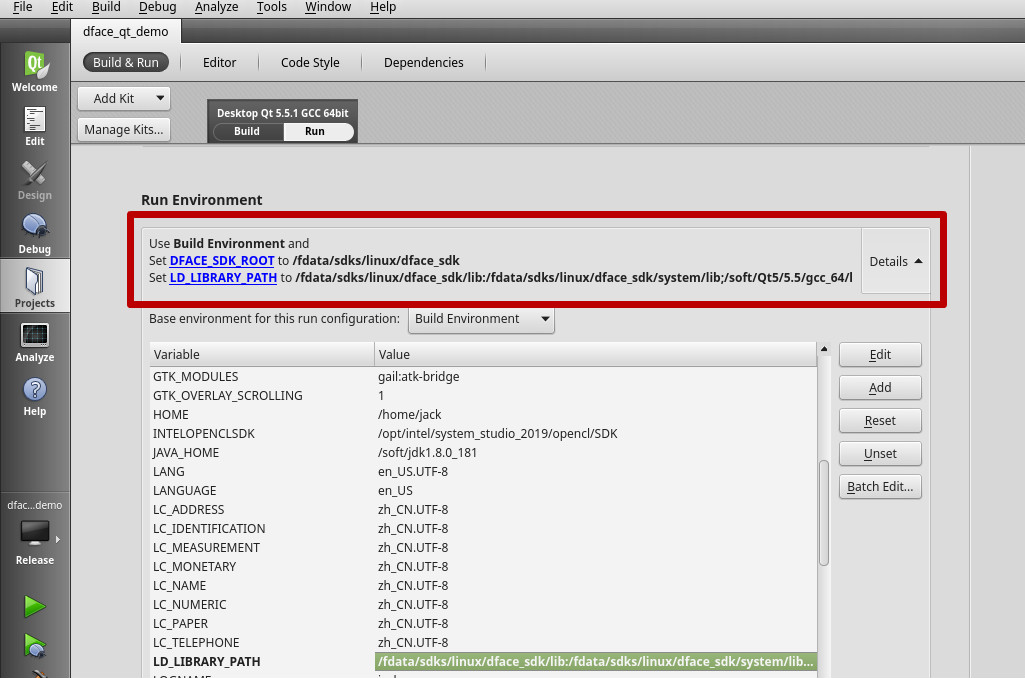 QT Creator opens {sdk_path}/example/cpp/dface_qt_demo project